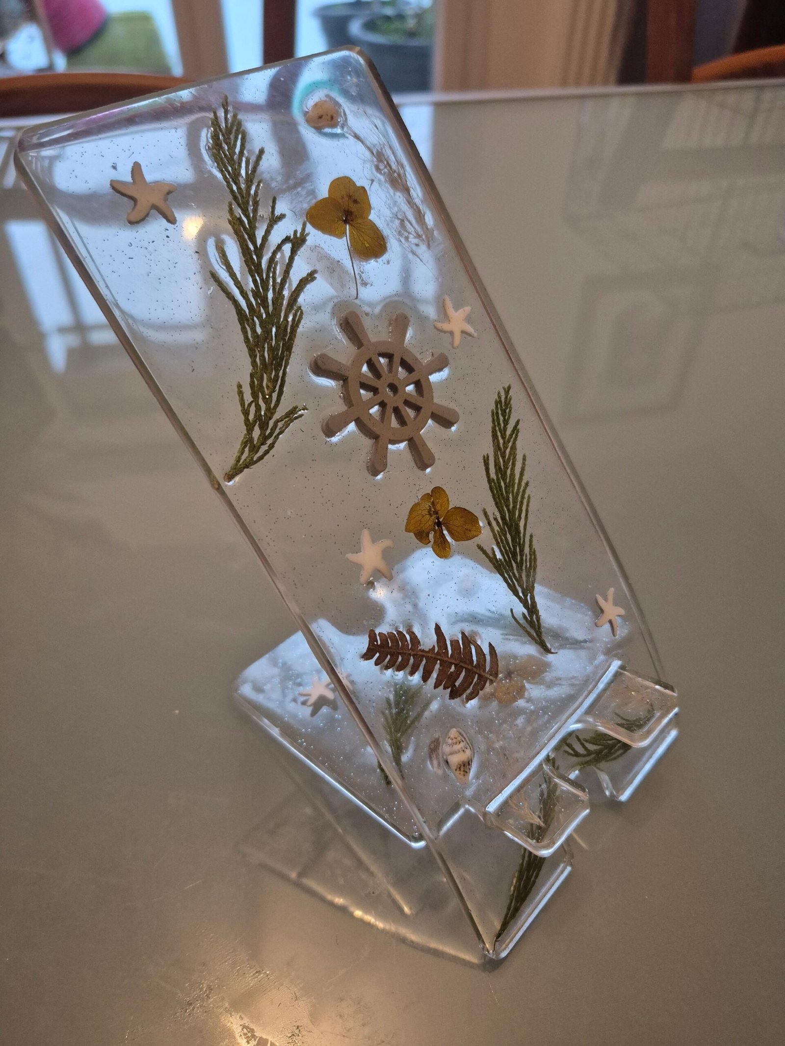 Chaque création est une œuvre unique, façonnée à la main avec passion. Coquillages délicats, sable doré, bois flotté, minéraux scintillants... Ces trésors naturels prennent vie dans la transparence de la résine, créant des objets de décoration artisanale qui capturent l’essence même de la nature.